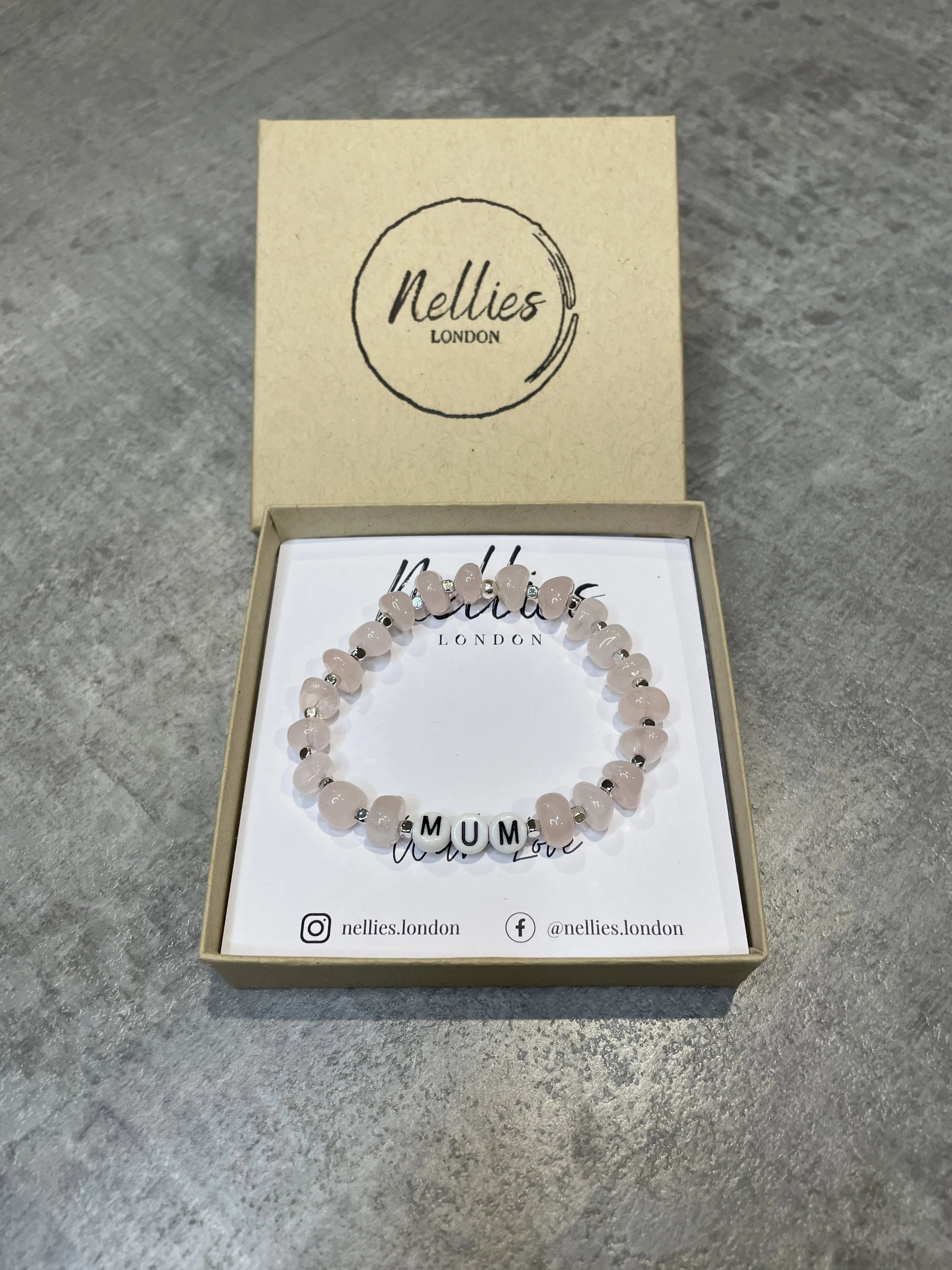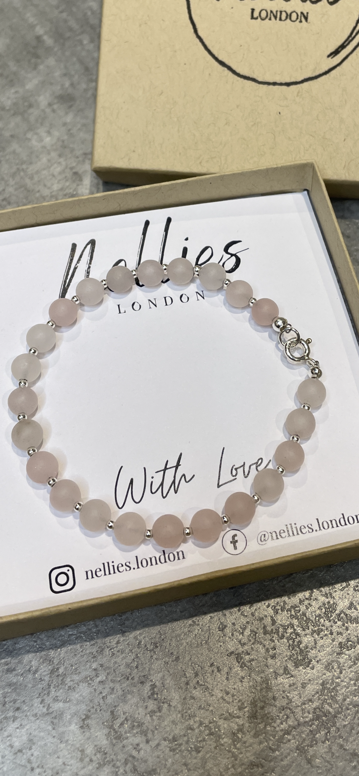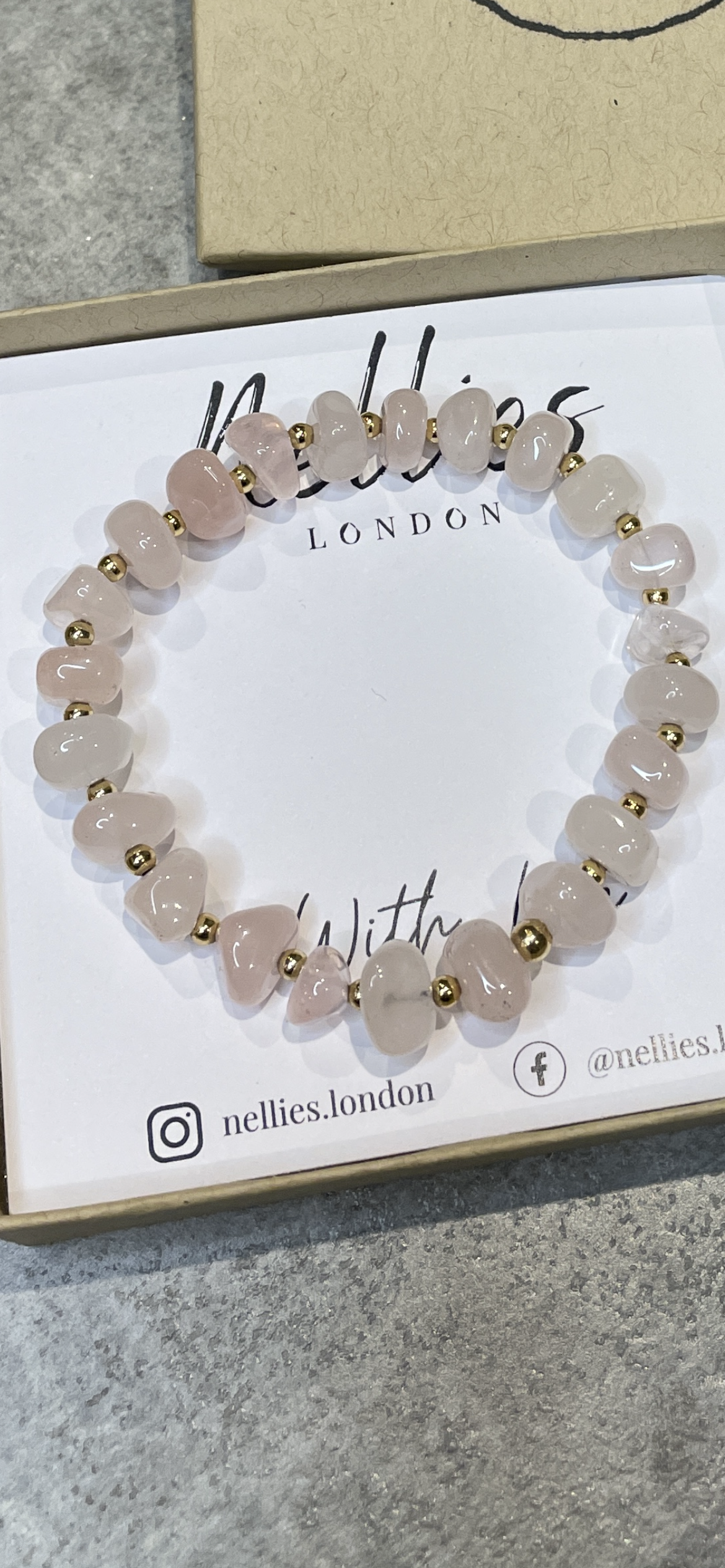 Rose Quartz Crystal Bracelet, made with 4mm/6mm or 8mm smooth round beads on stretch elastic.